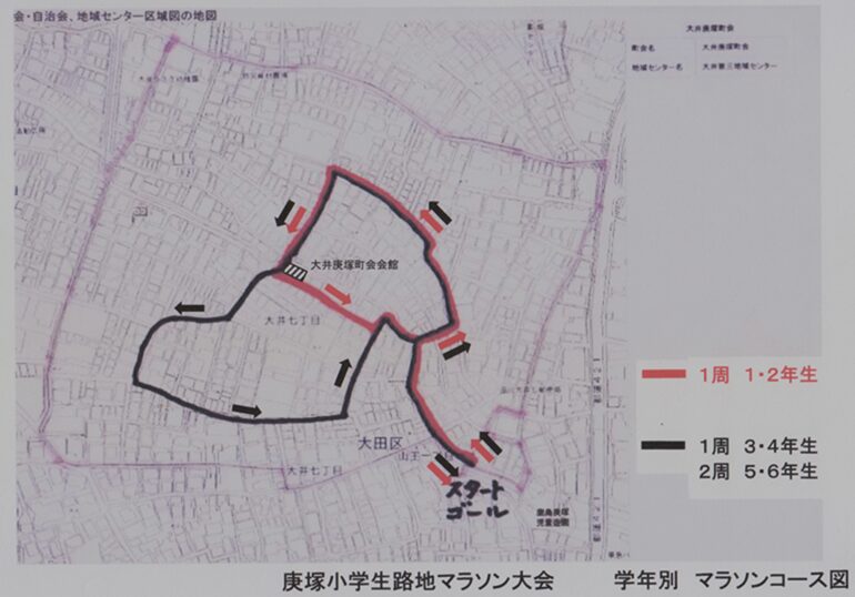 庚塚町会小学生路地マラソン、いよいよスタートです。途中コロナの影響で中止、開催不能等ありましたが、第九回庚塚小学生路地マラソン大会が3月8日(日)に開催されます。品川区のマラソン大会が同日に開催されますが、約70人の参加申し込みがありました。庚塚公園前のスタートから、小学1・2年生は600m、小学3・4年生は1,000m、そして5・6年生は2,000mの競走です。当日は皆さんの応援をお願いいたします。