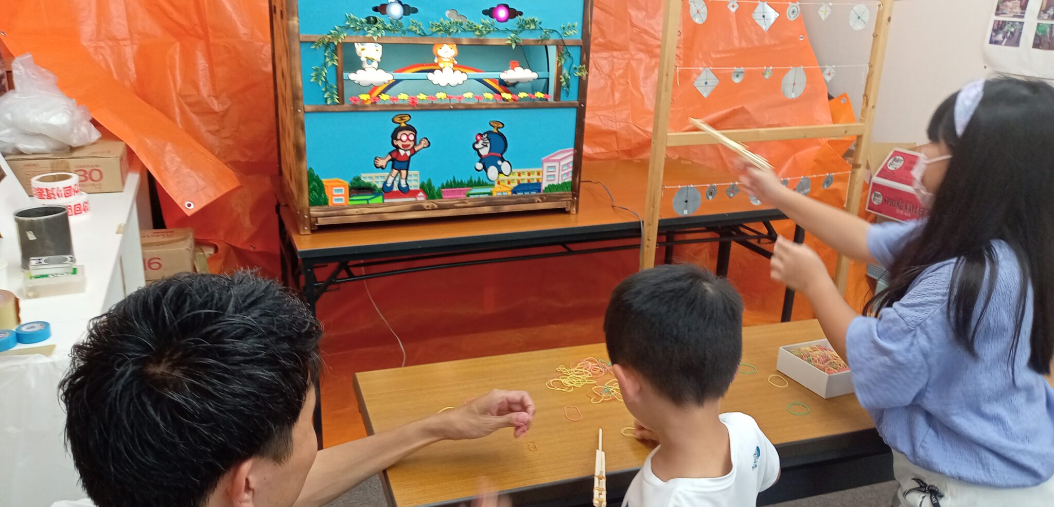 次はゴム鉄砲。担当の副会長が半製品まで作ってくれたのでスムースに遊べました。