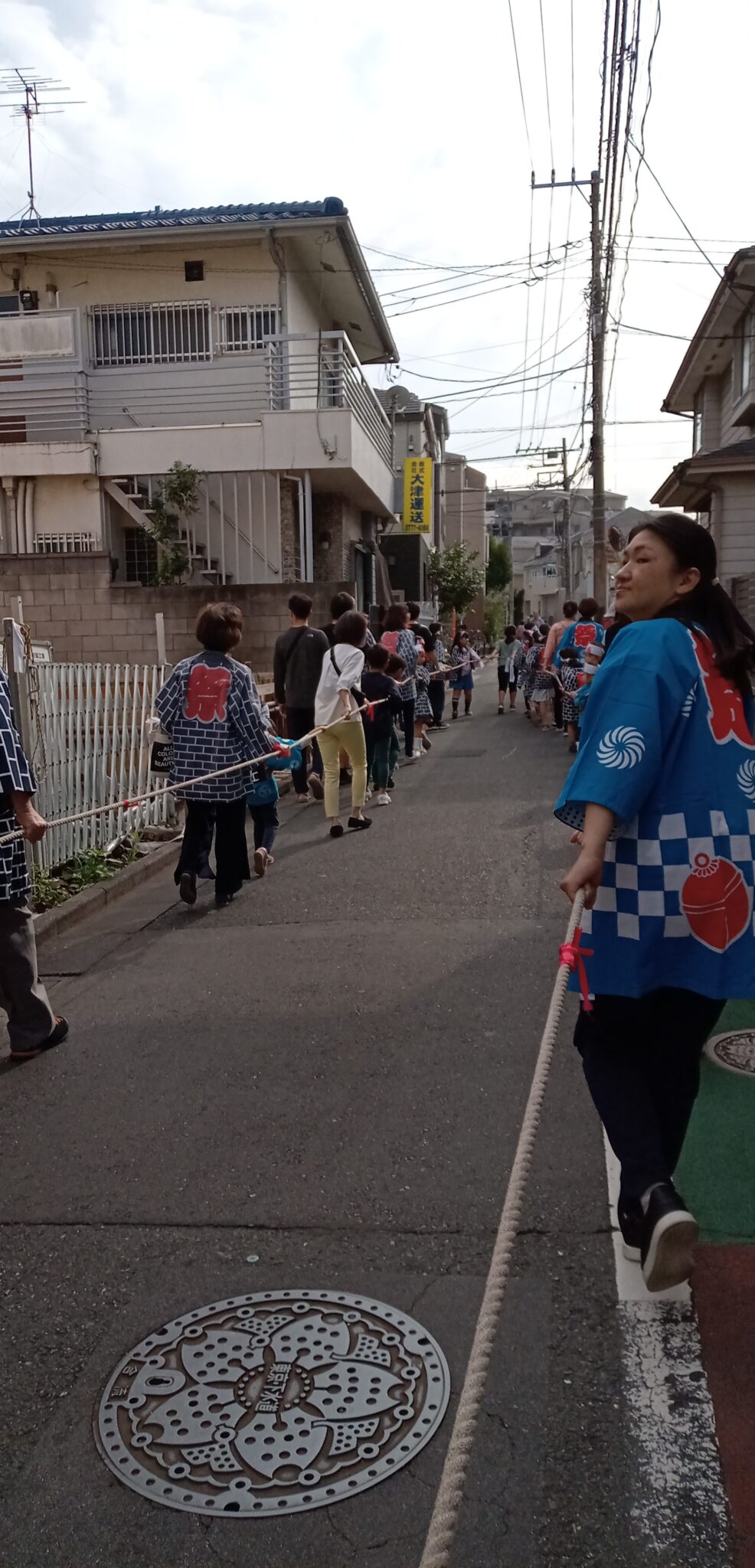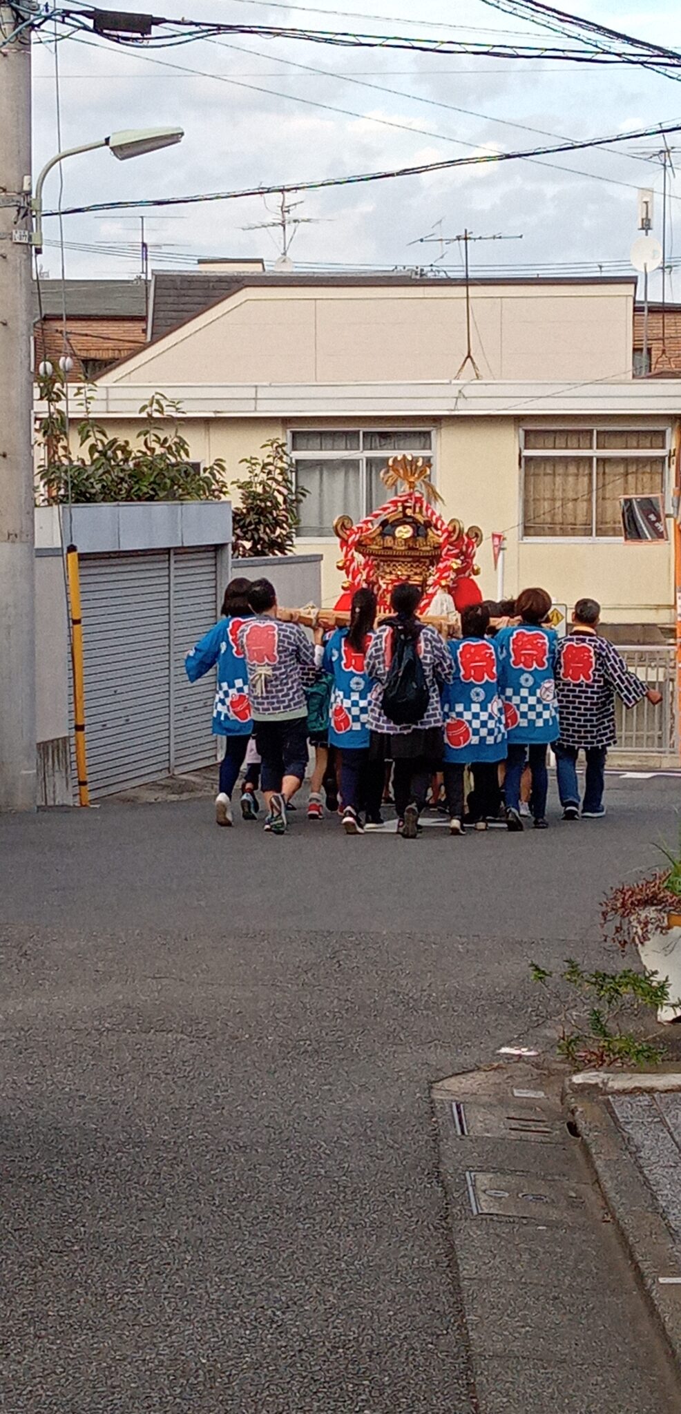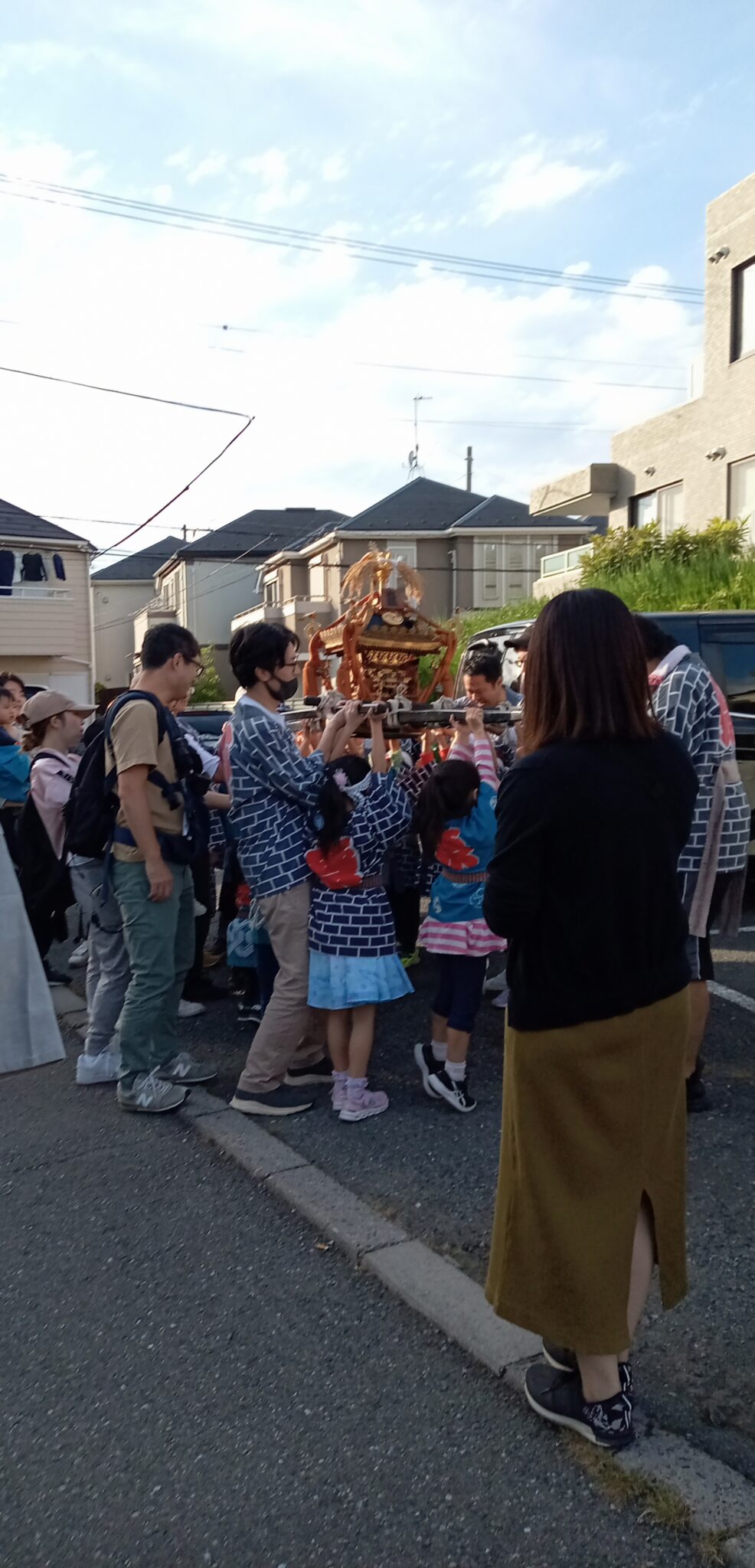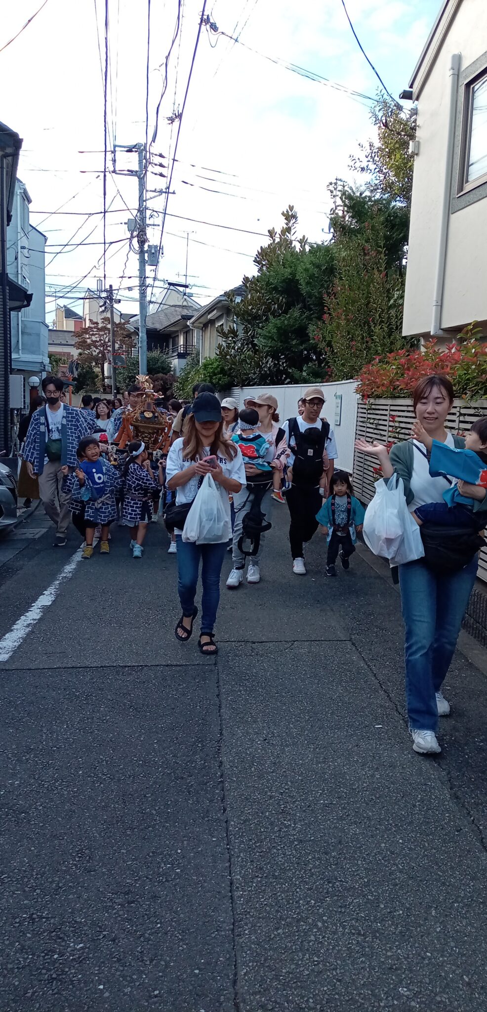 ワッショイ、ワッショイ、大きな声でワッショイ(和を背負う、とか。セヤセヤではありません)元気よく担ぎました。町内の道は狭く曲がっています。その道いっぱいになってお神輿が通りました。