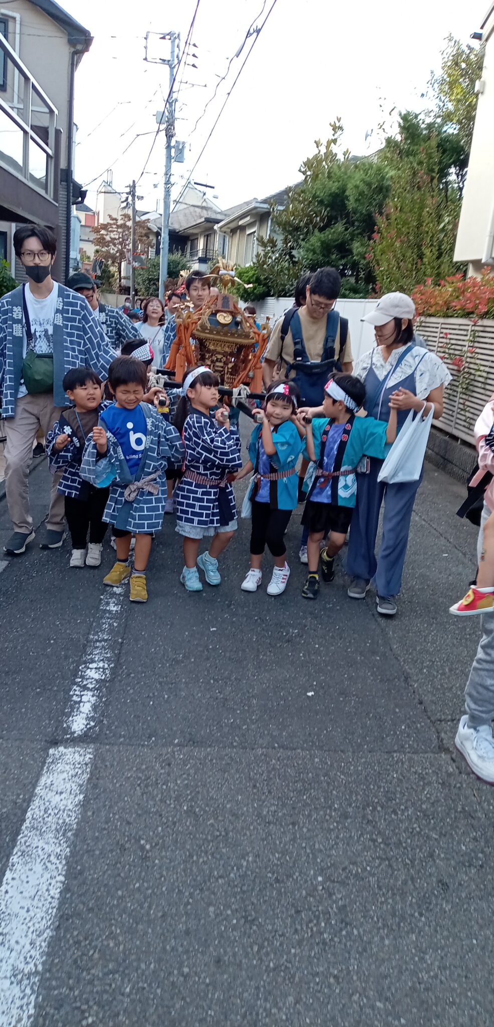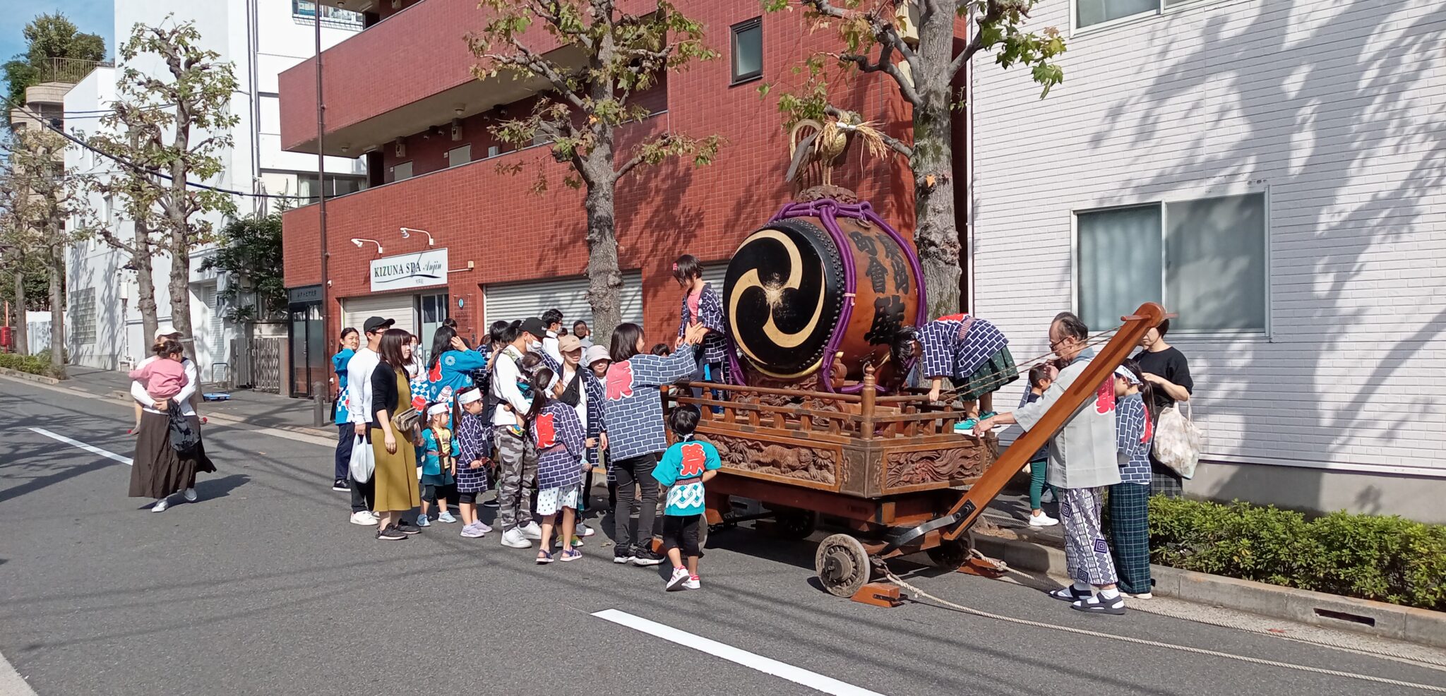 14日土曜日は晴天で、午後出石町会から引き継いだ山車を巡行させました。うさぎ幼稚園から山王方面を巡行させ、ほぼ町内の半分を回りました。