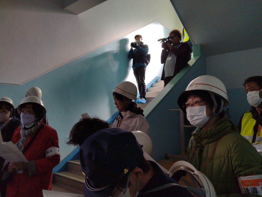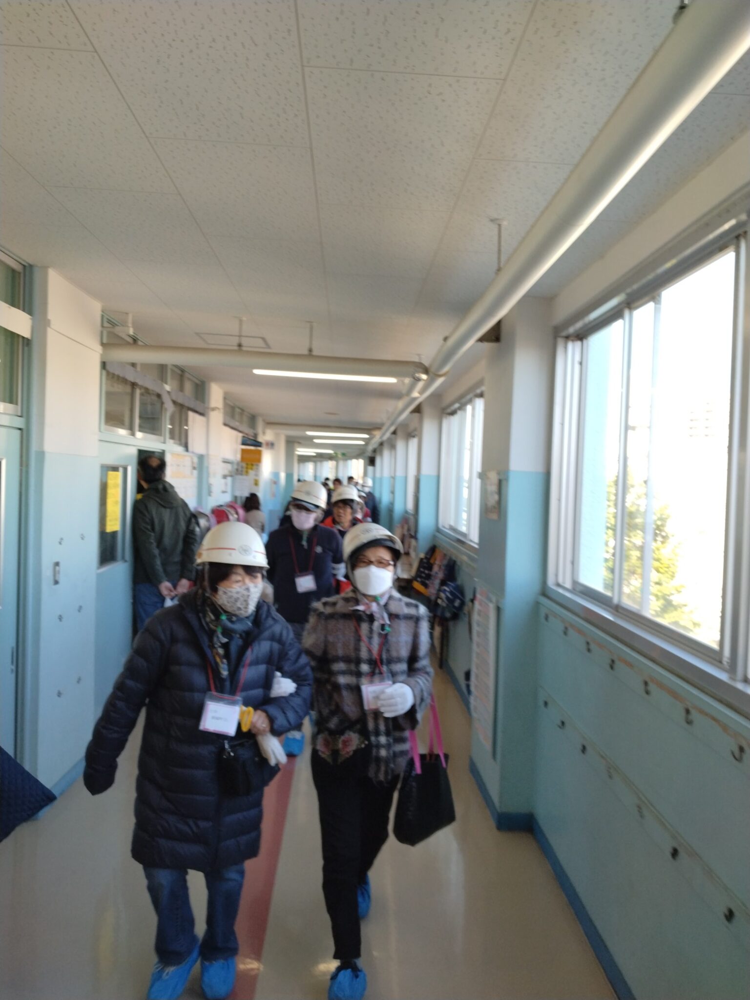 12月2日土曜日、品川区一斉防災訓練、区民避難所での避難所訓練が行われました。大井庚塚町会は大井第一小学校が区民避難所になります。庚塚町会会館は一時集合場所で、会館に集まってから大井第一小学校へ避難するのです。