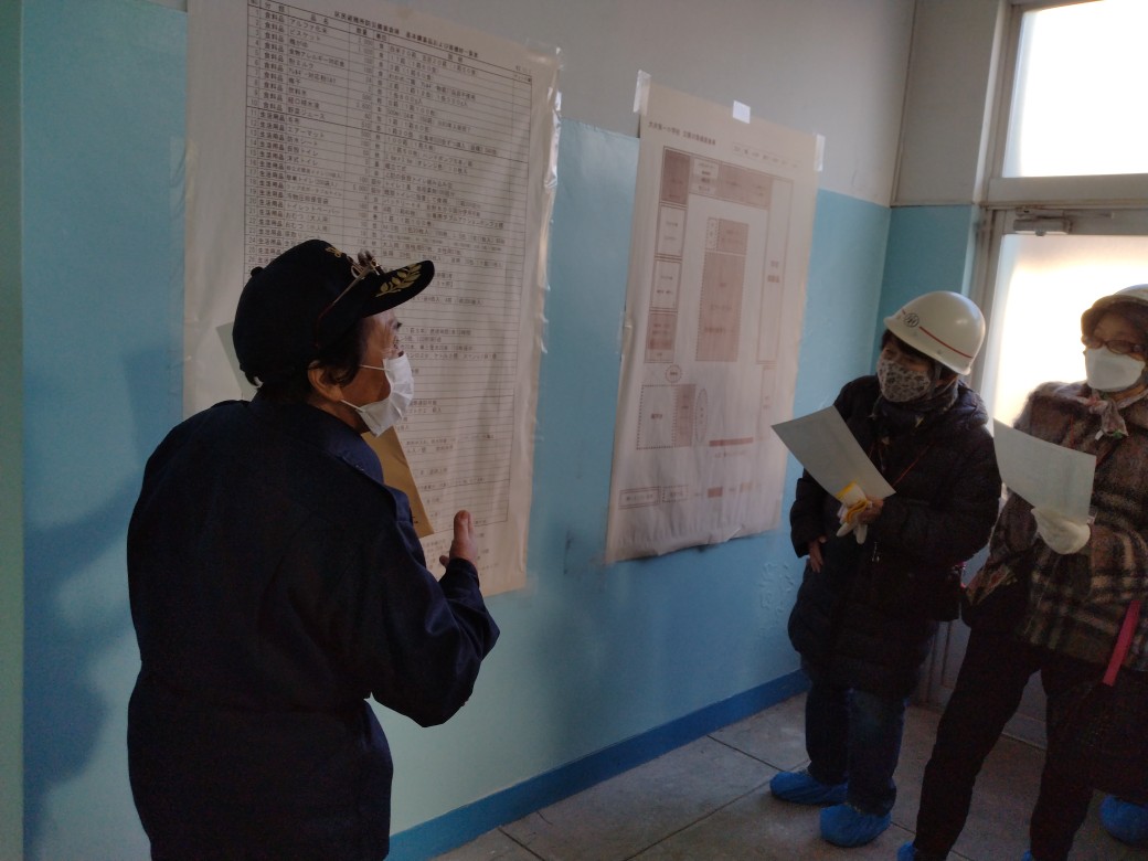 地下倉庫での説明役は大井庚塚町会町会が担当し、副町会長が案内しました。