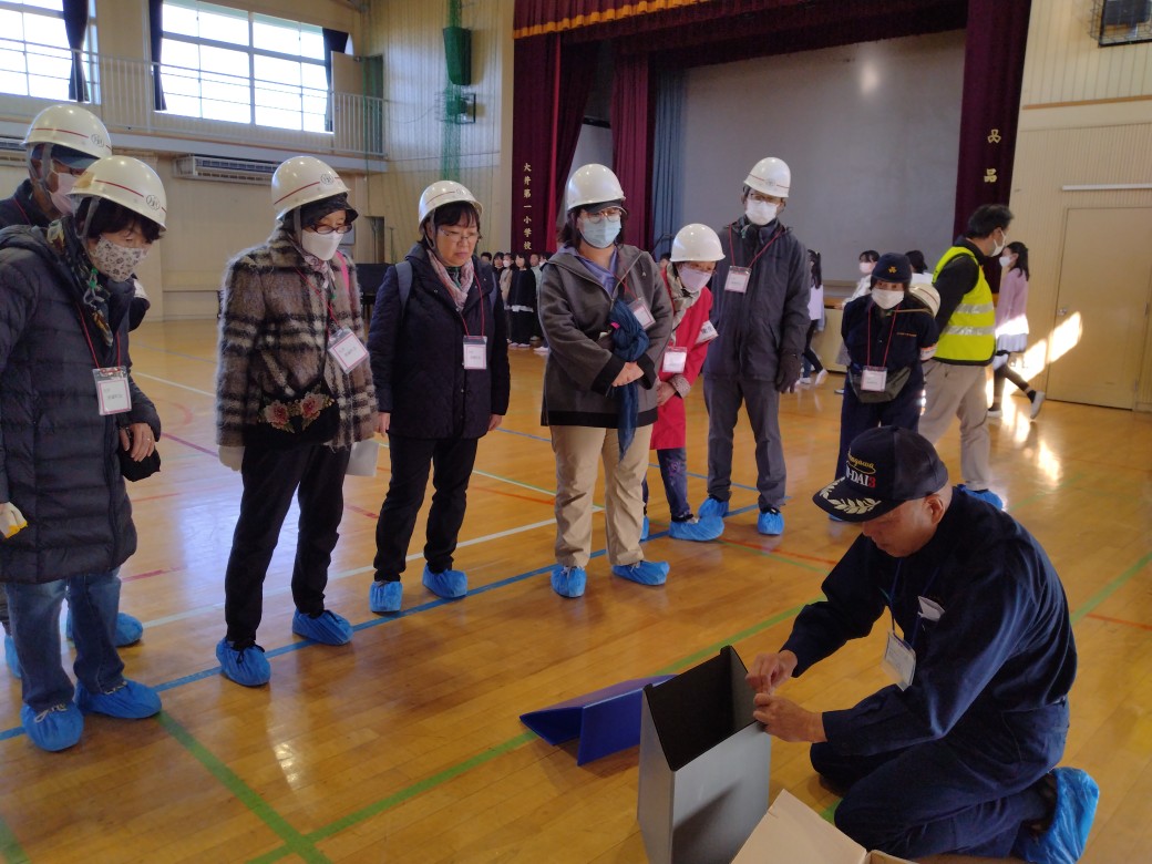 この避難所訓練、ケーブルテレビの取材が入っていました。ニュースもしくは区報になっていると思います。