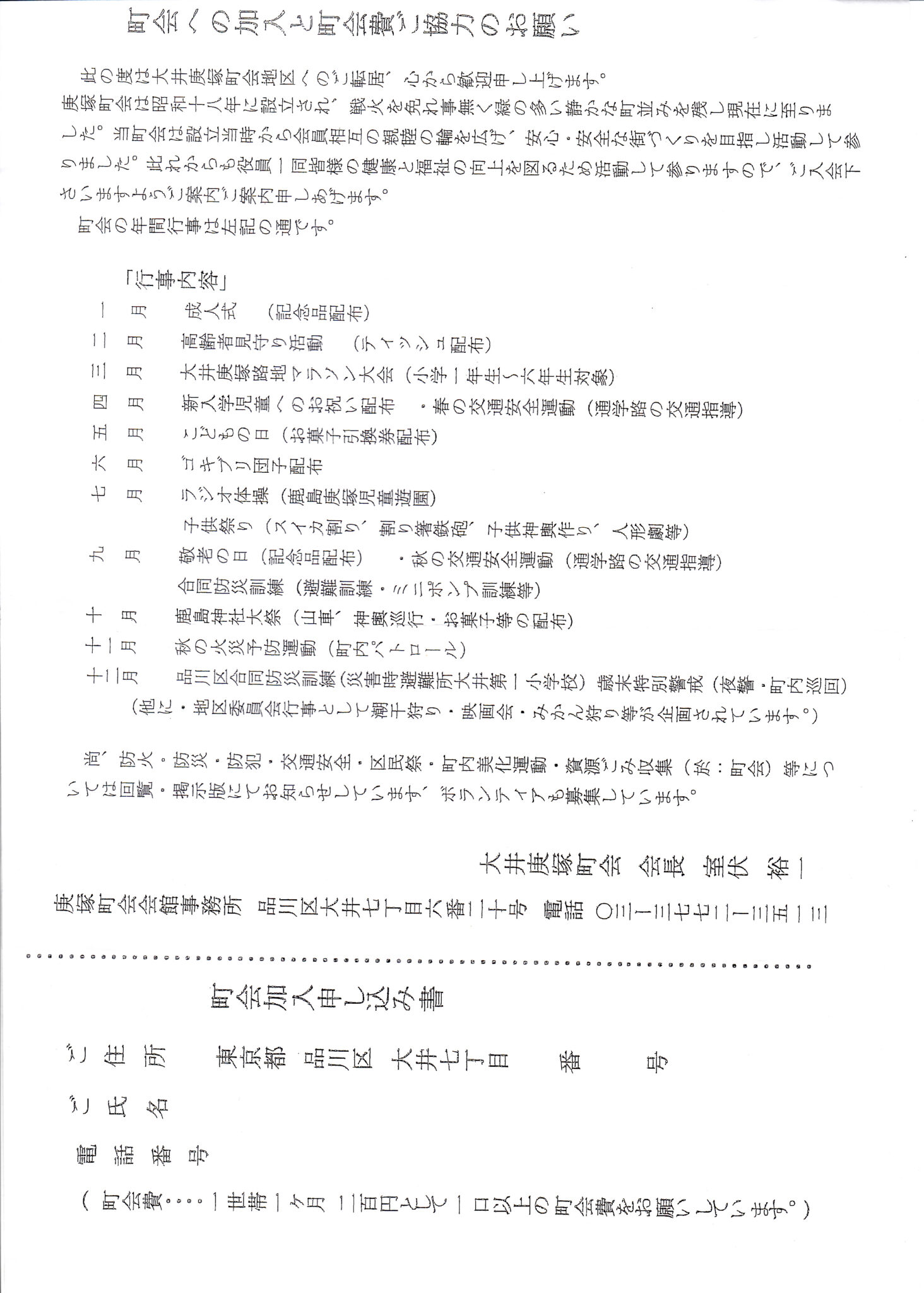 大井庚塚町会への加入