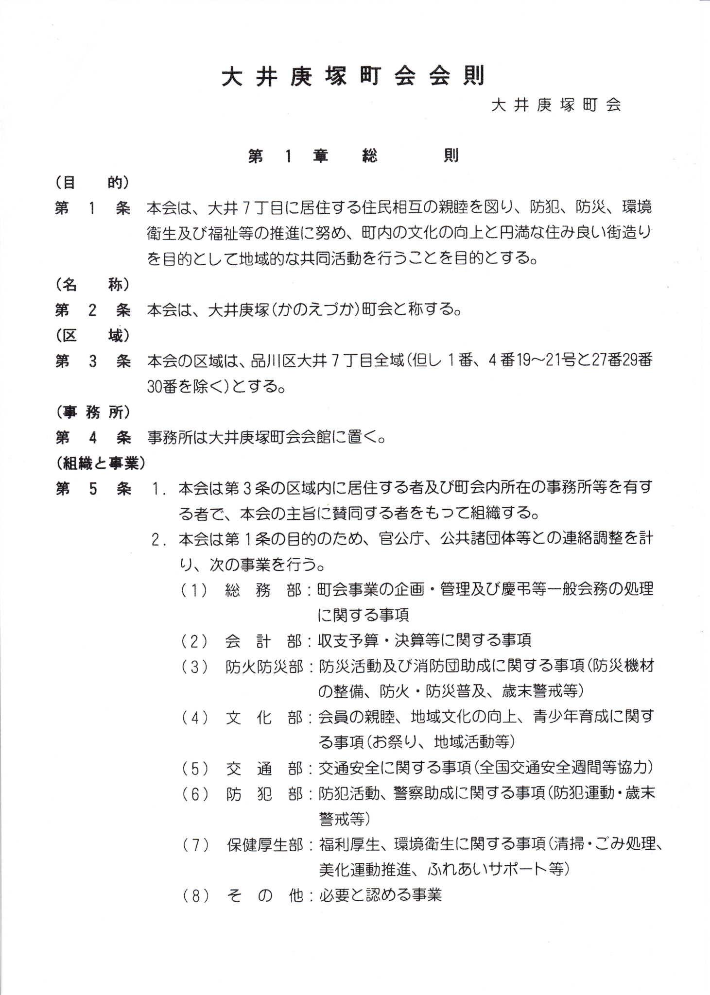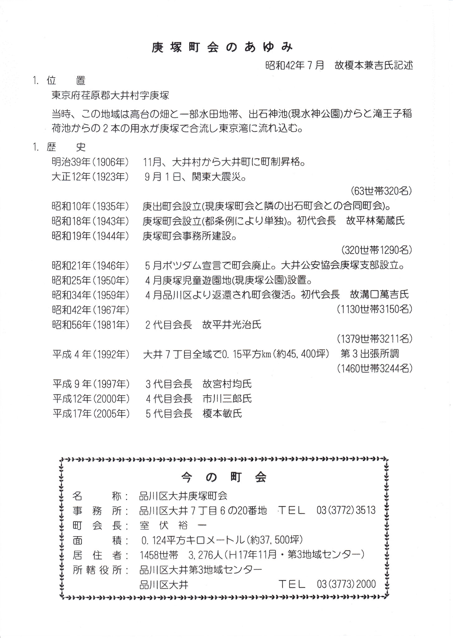 大井庚塚町会の歴史と会則