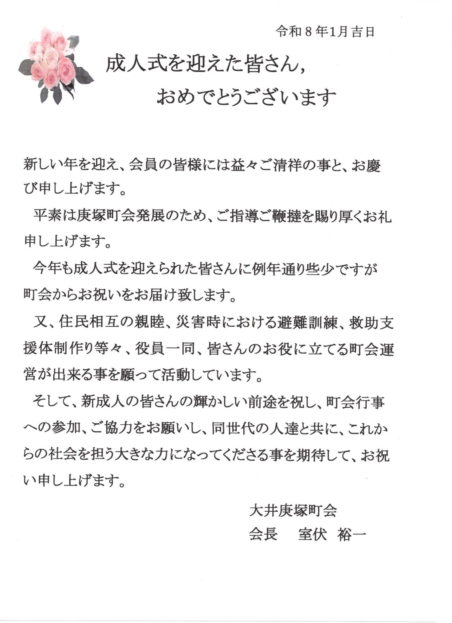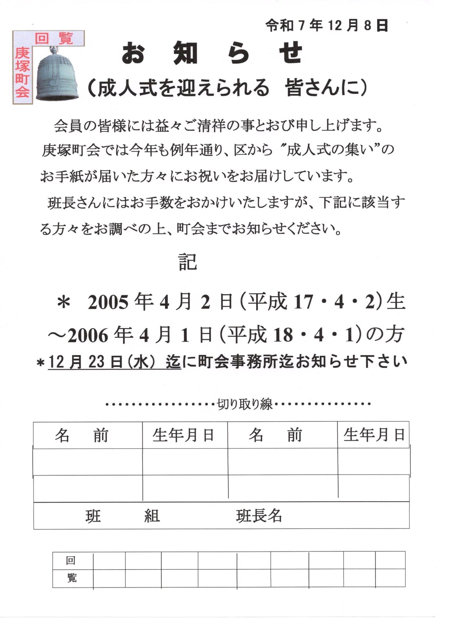 本サイトは、東京都品川区大井庚塚町会のホームページです。