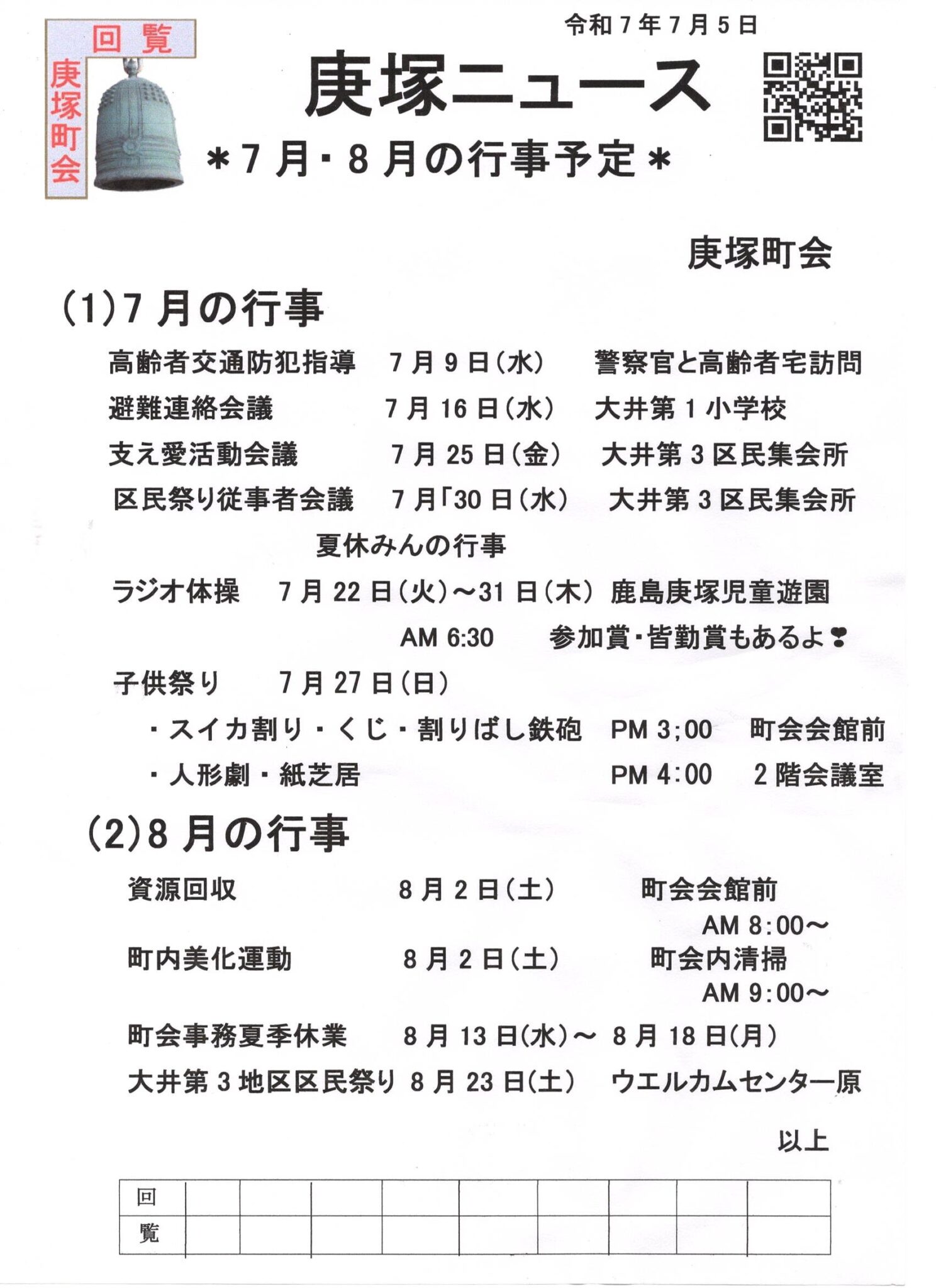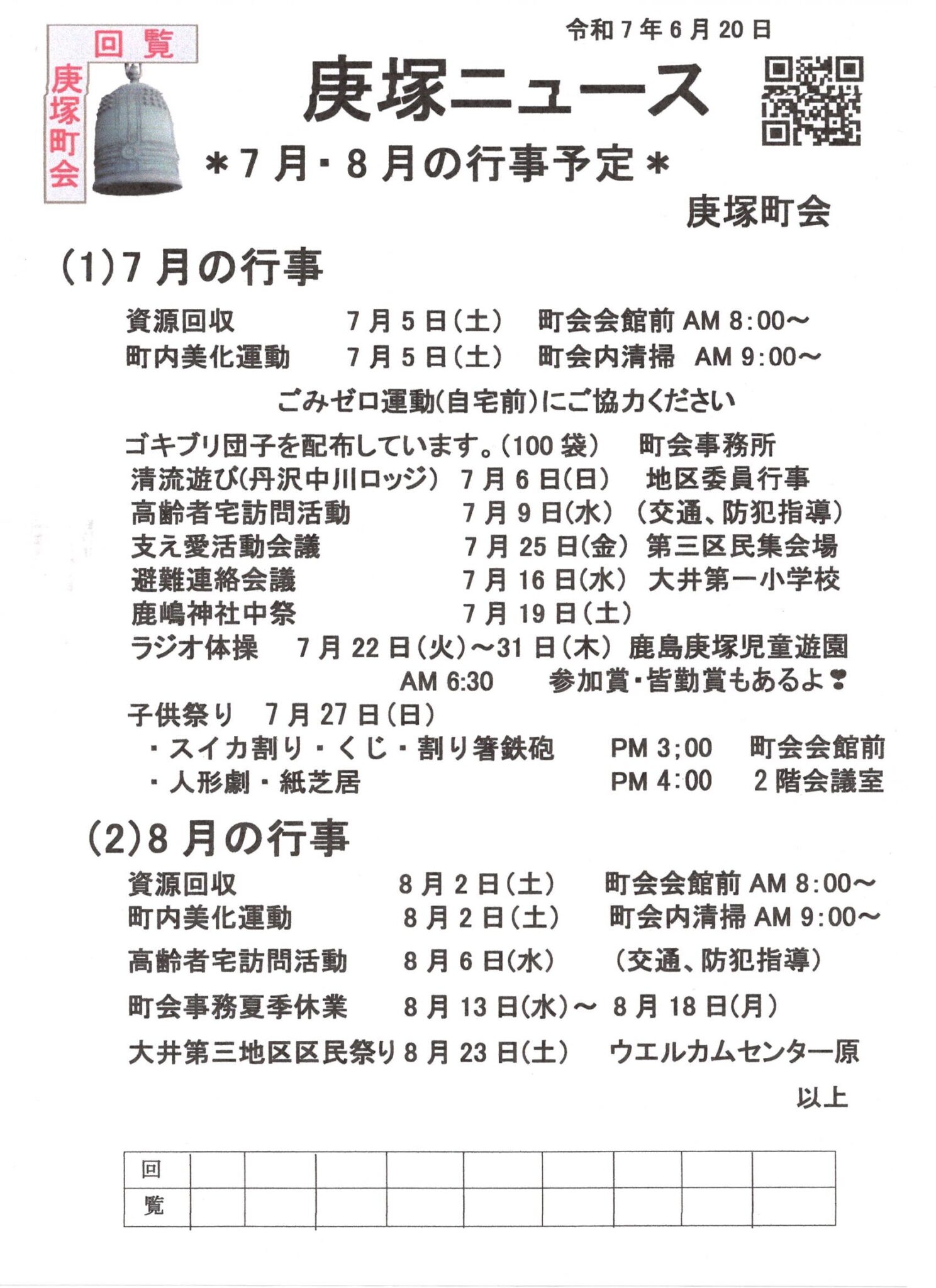 7月の庚塚ニュース