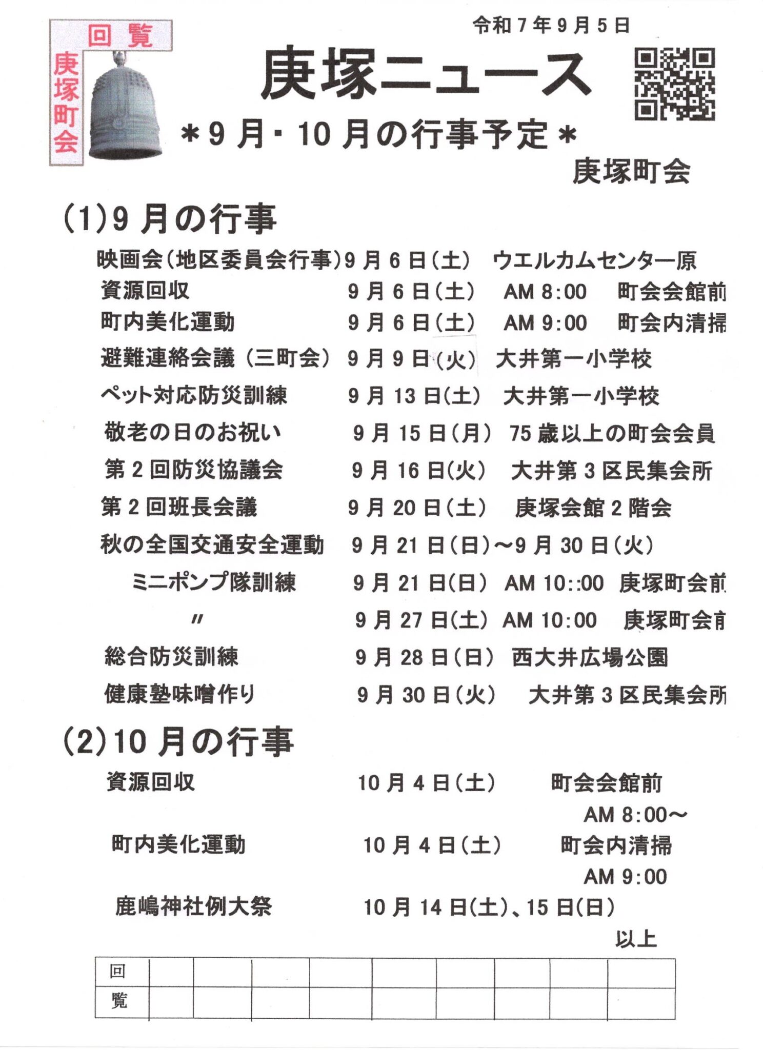 9月の庚塚ニュース