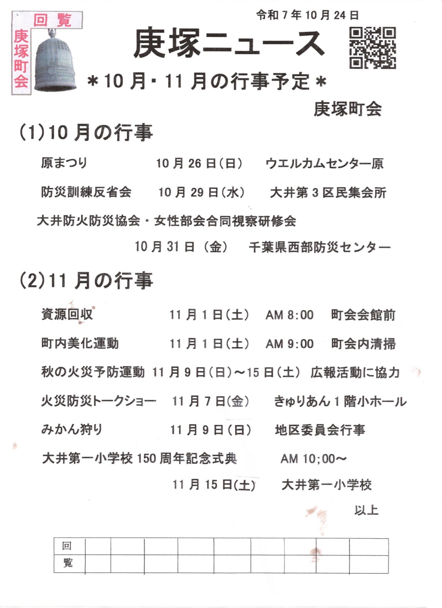 10月の庚塚ニュース