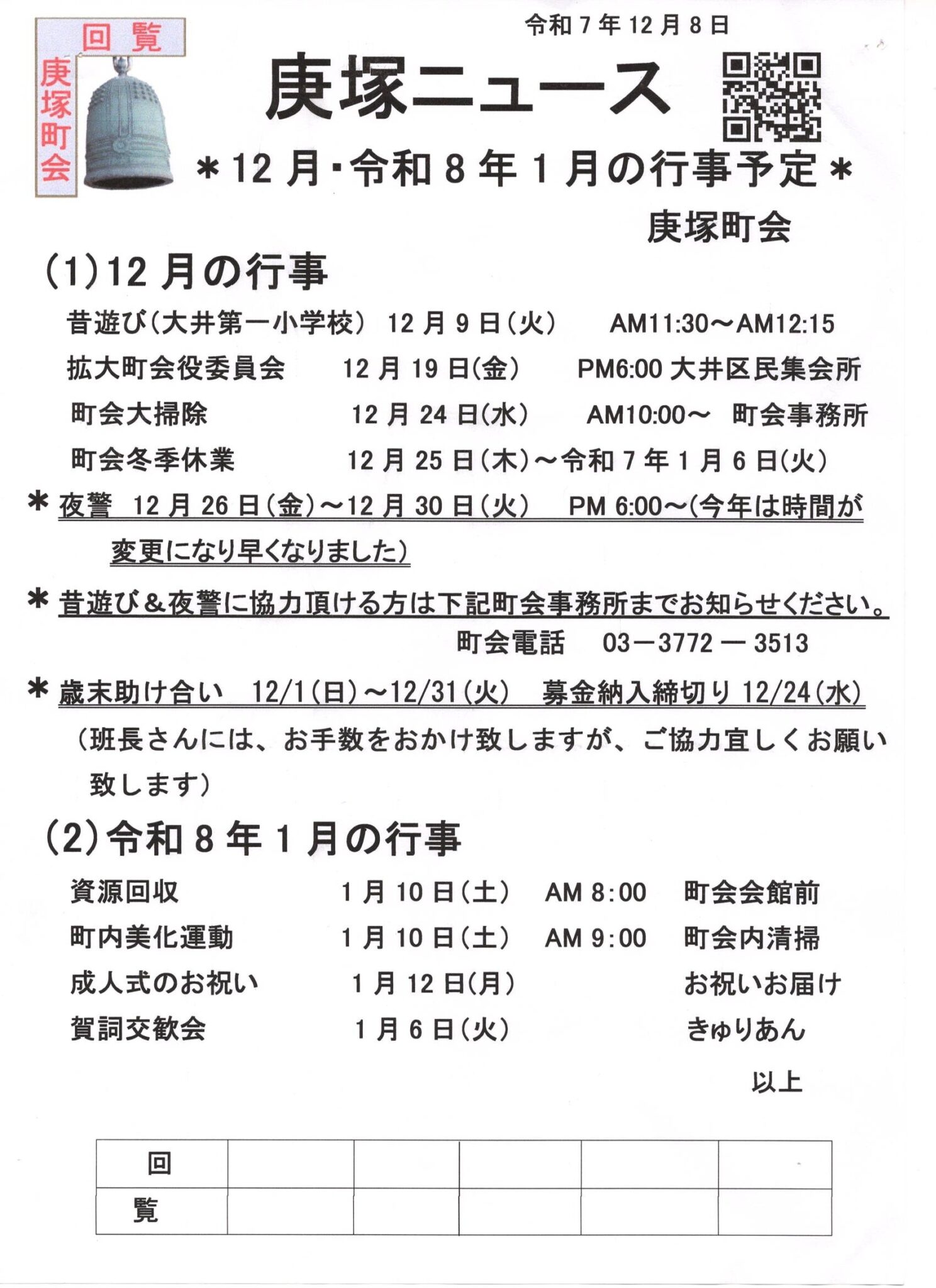 12月の庚塚ニュース
