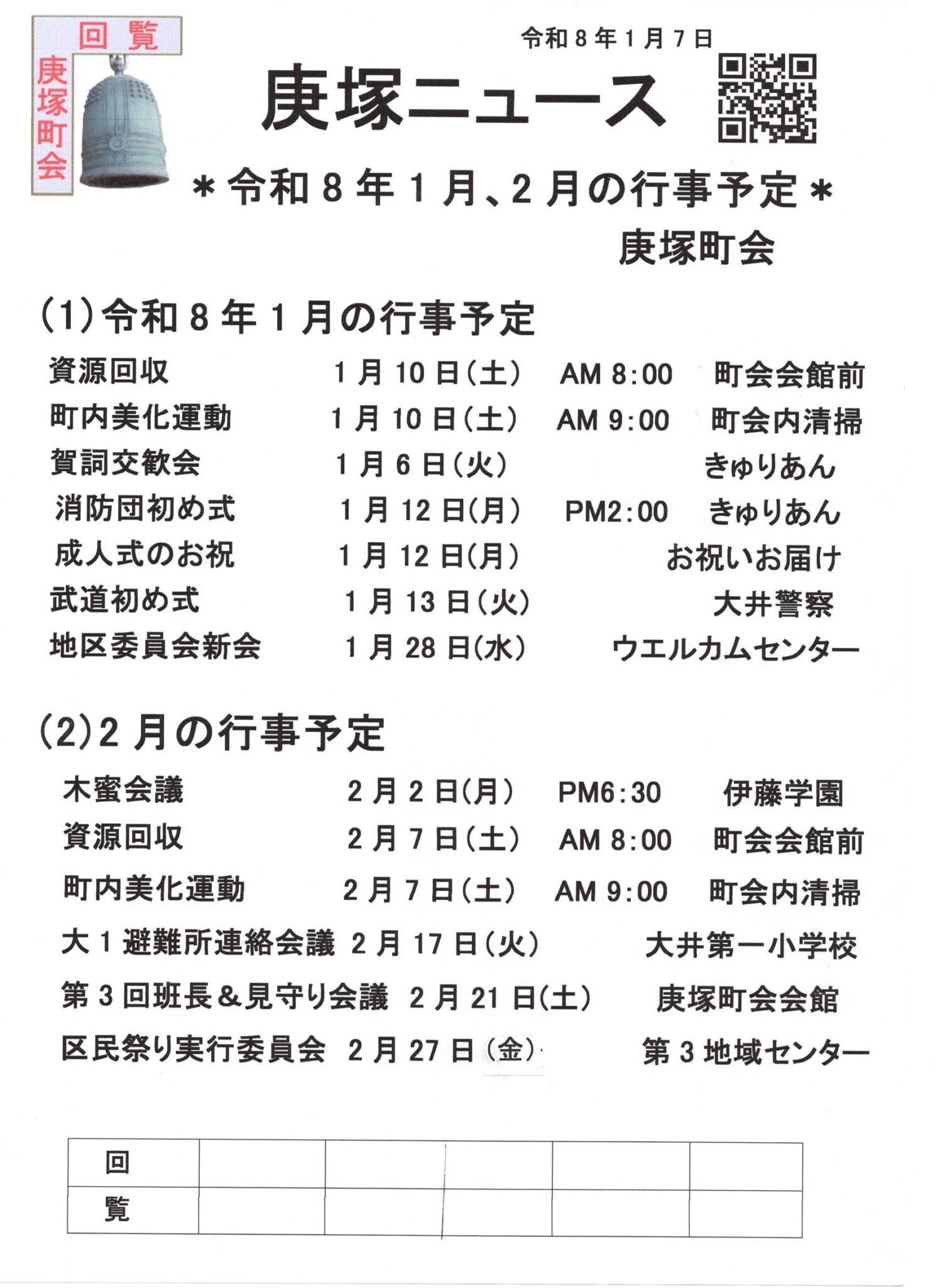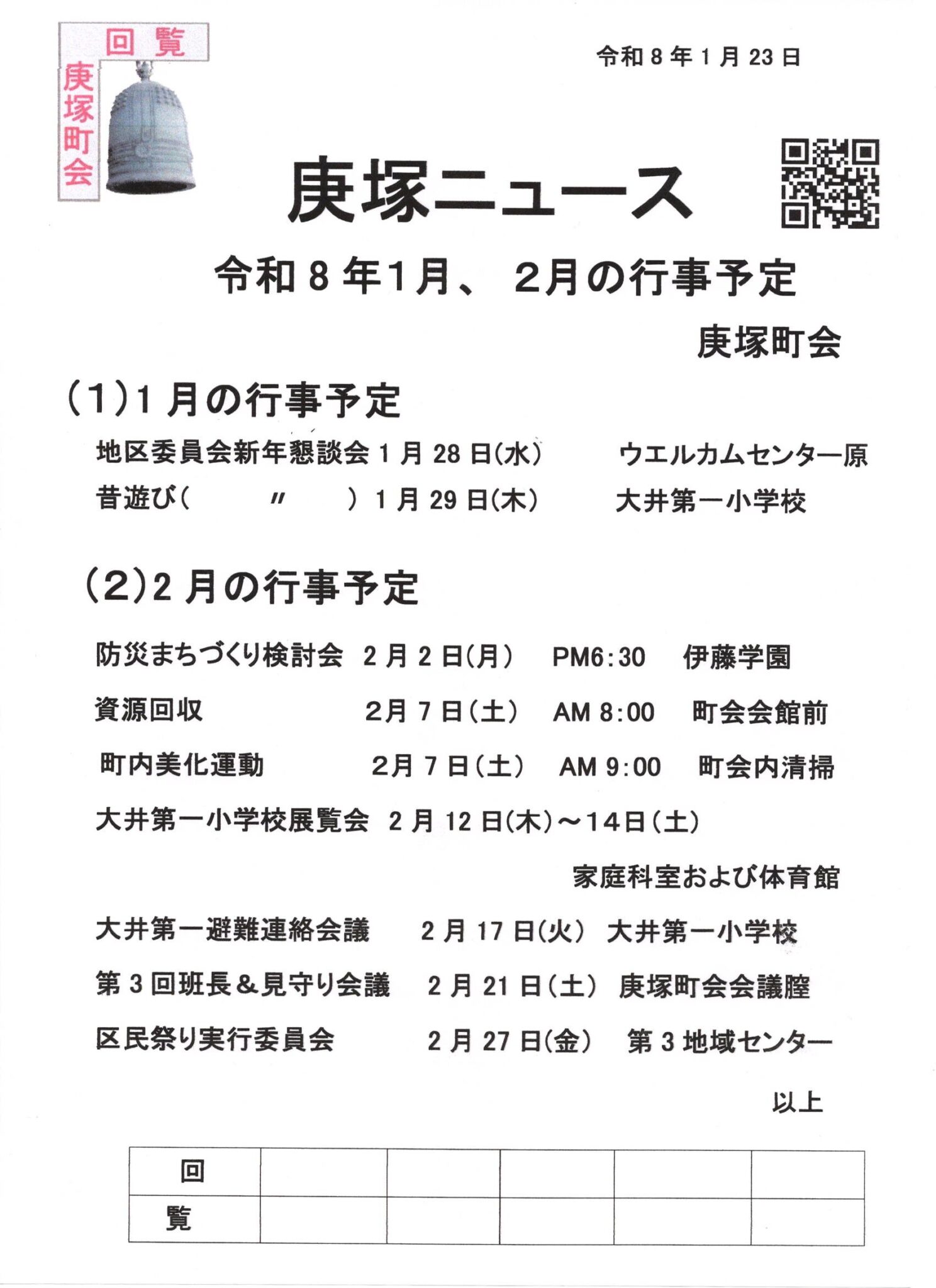 1月の庚塚ニュース