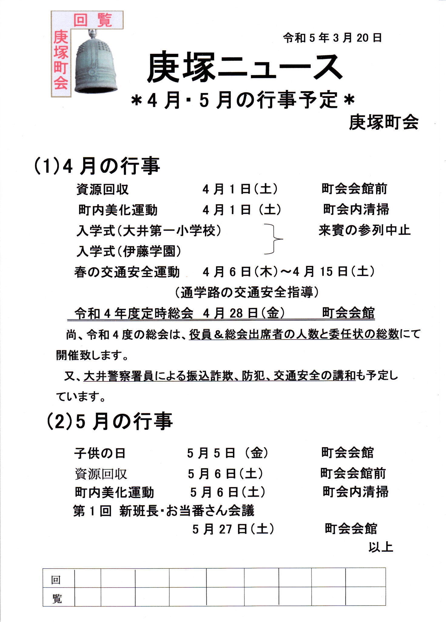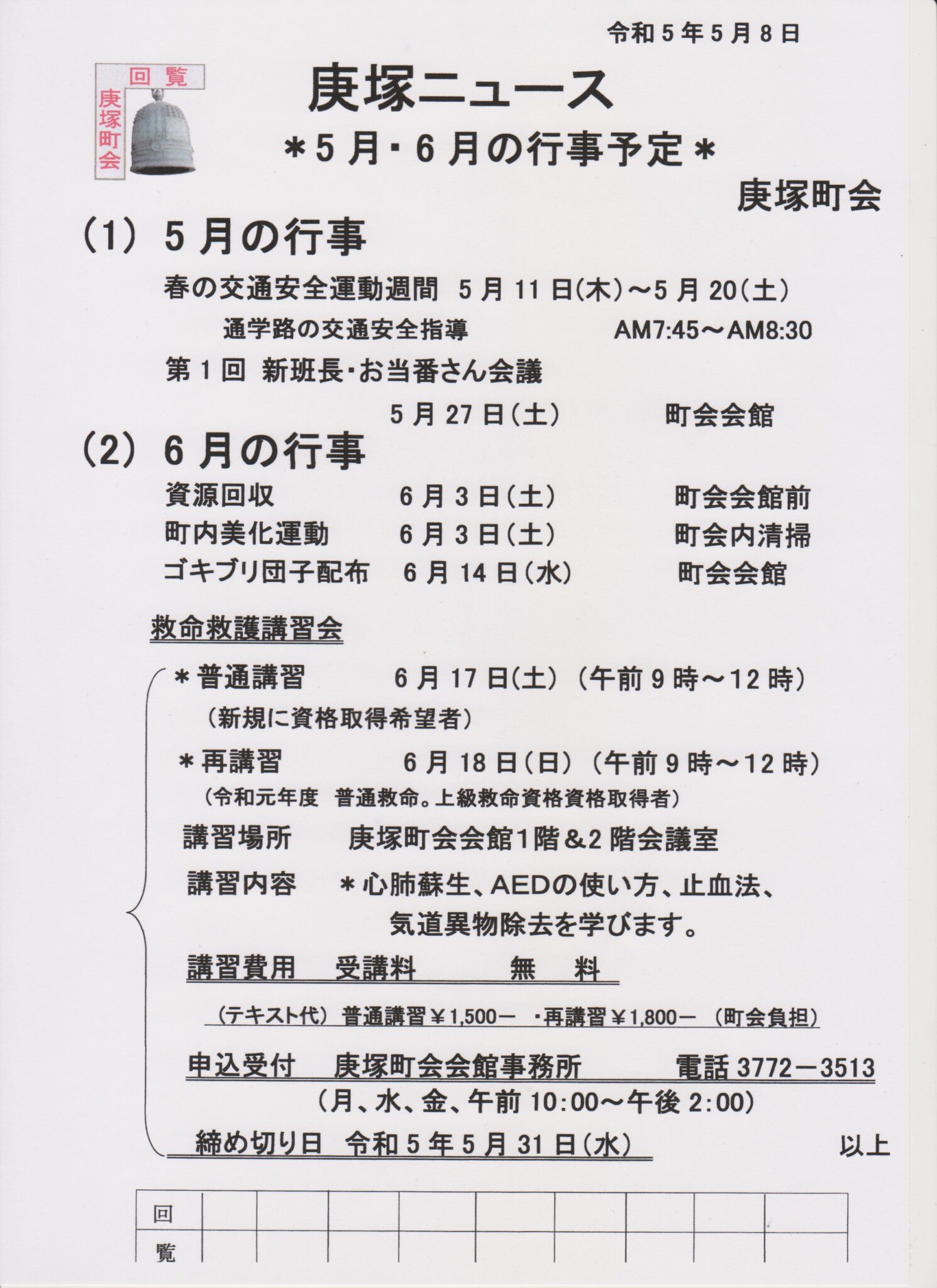 5月の庚塚ニュース