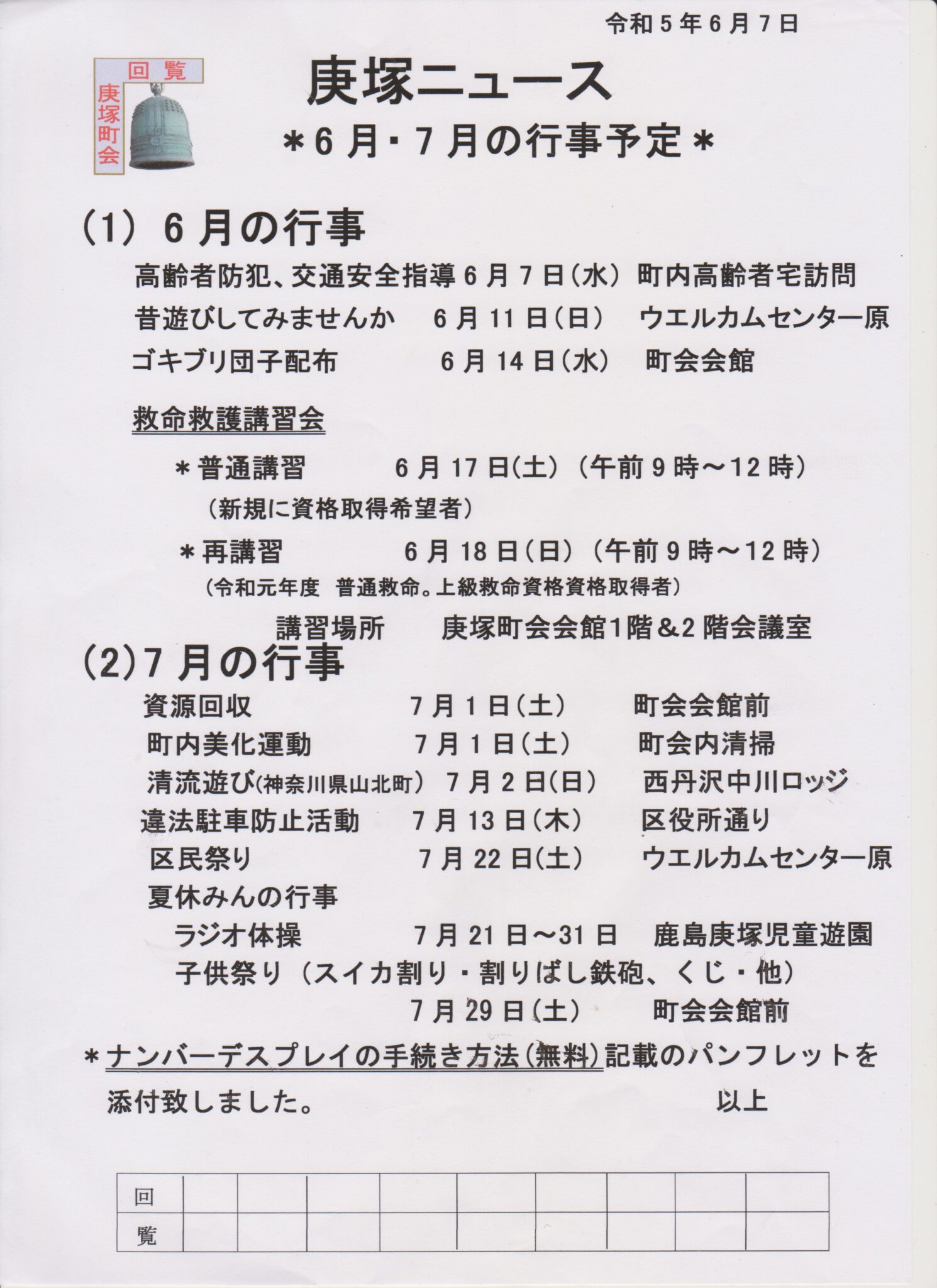 6月の庚塚ニュース