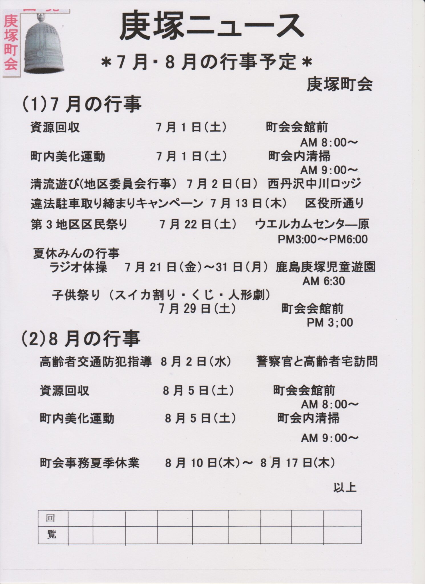 7月の庚塚ニュース