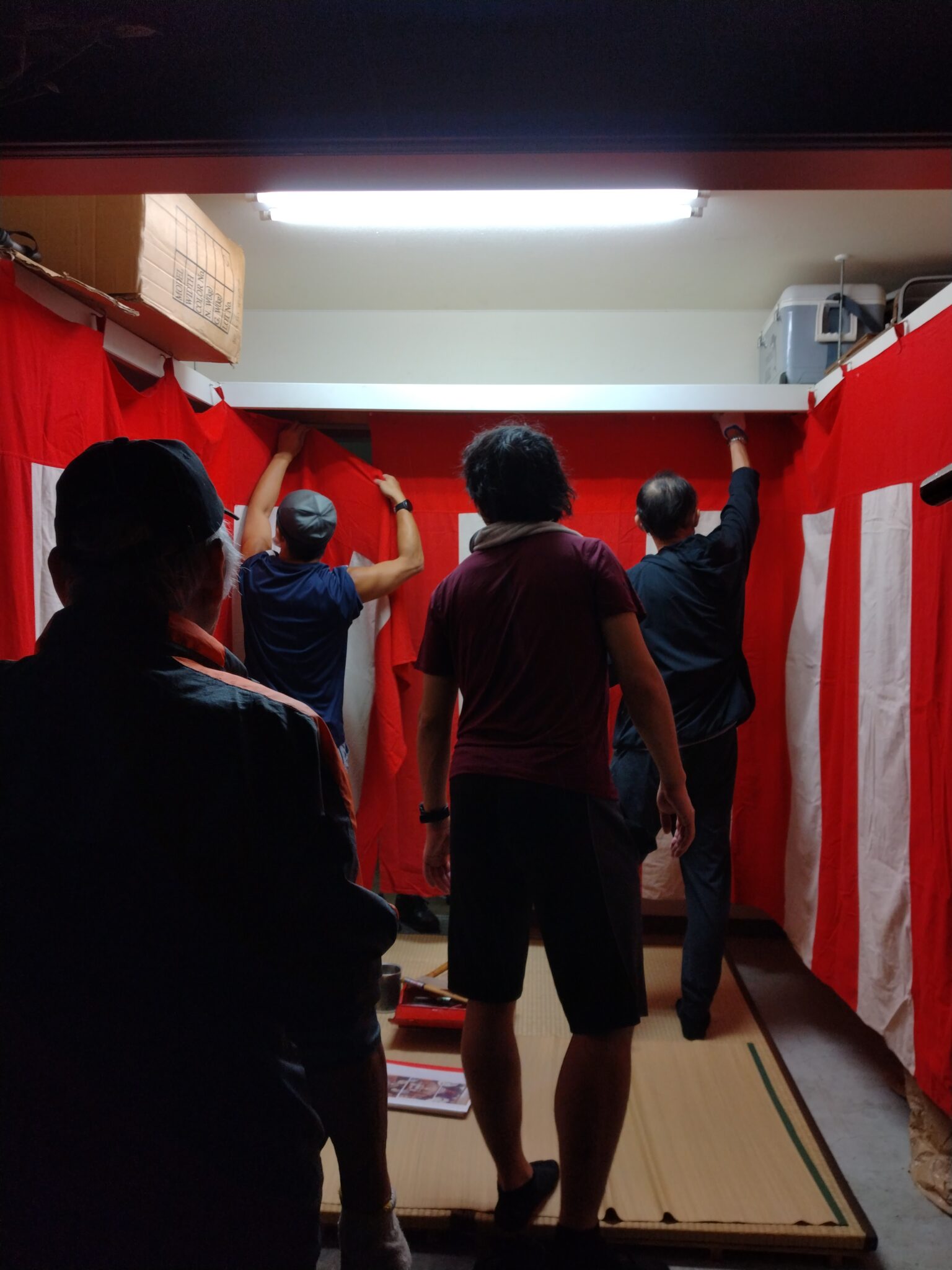 棚に幕を掛けるとテントになる。