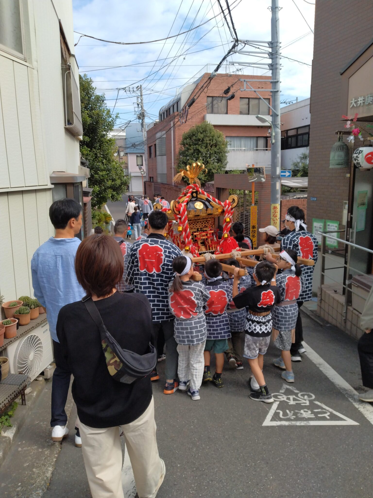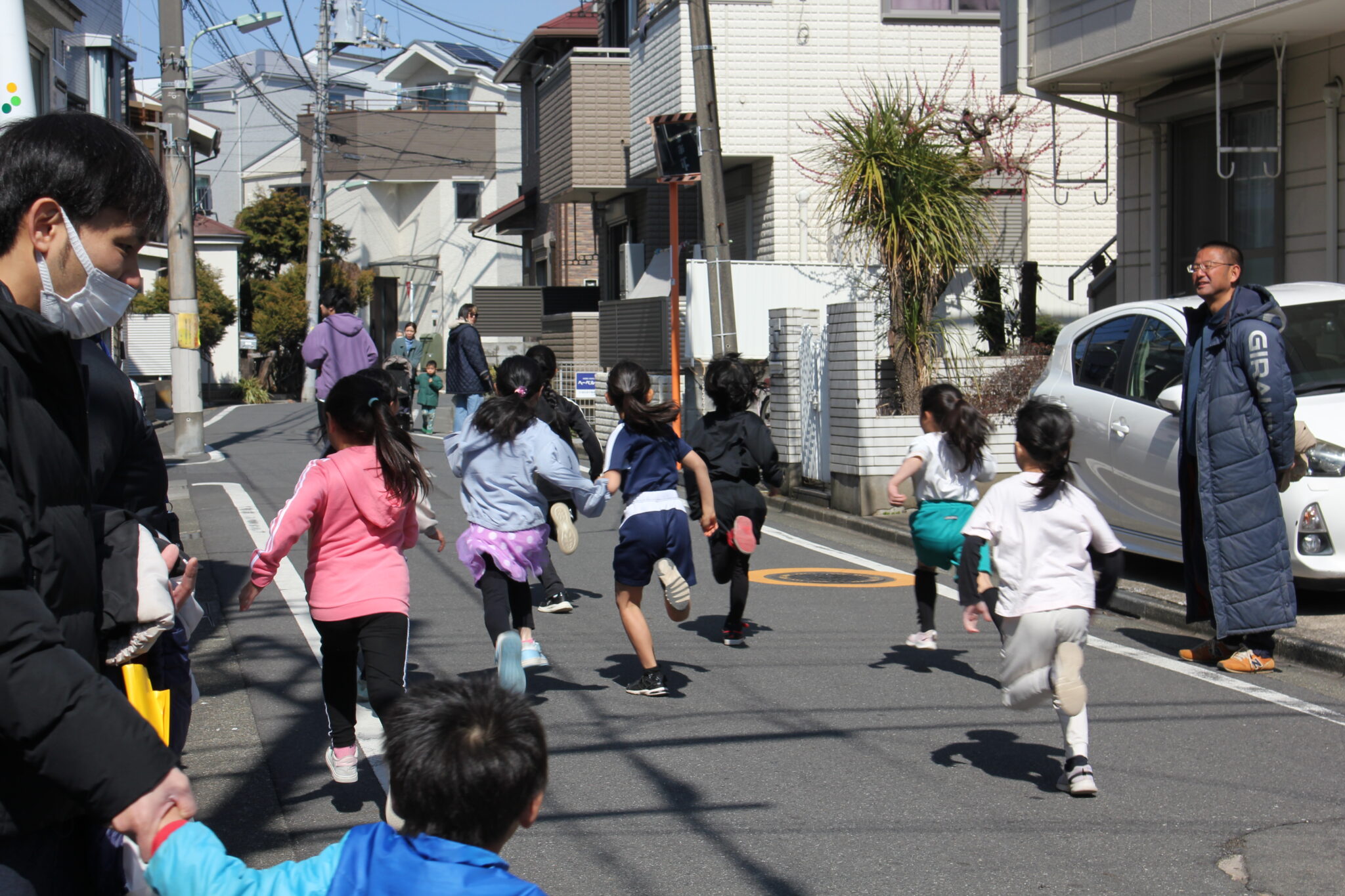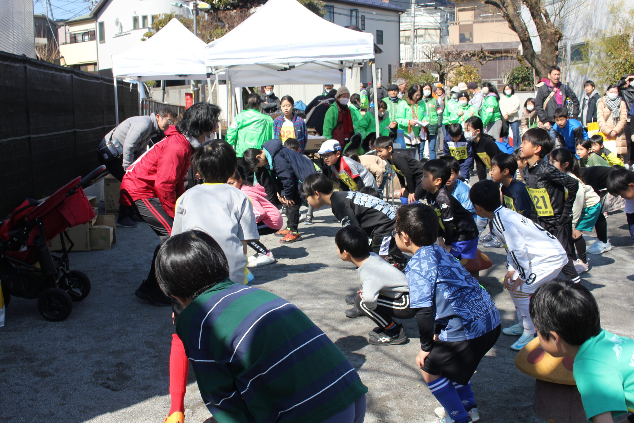 第1組目は1・2年生男子のグループです。「用意・・・・パーーン!」先頭には町会役員が先導として走り、コースを案内しました。その後3レース後の高学年の子には抜かれてしまいました。