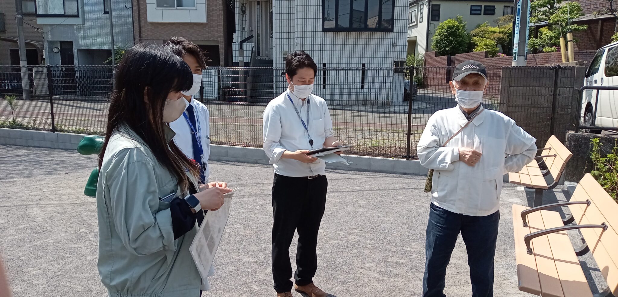 今日、4月20日、庚塚公園(鹿島庚塚児童遊園)に新しく設けられた、大井庚塚町会花壇についての説明会が現地で行われました。